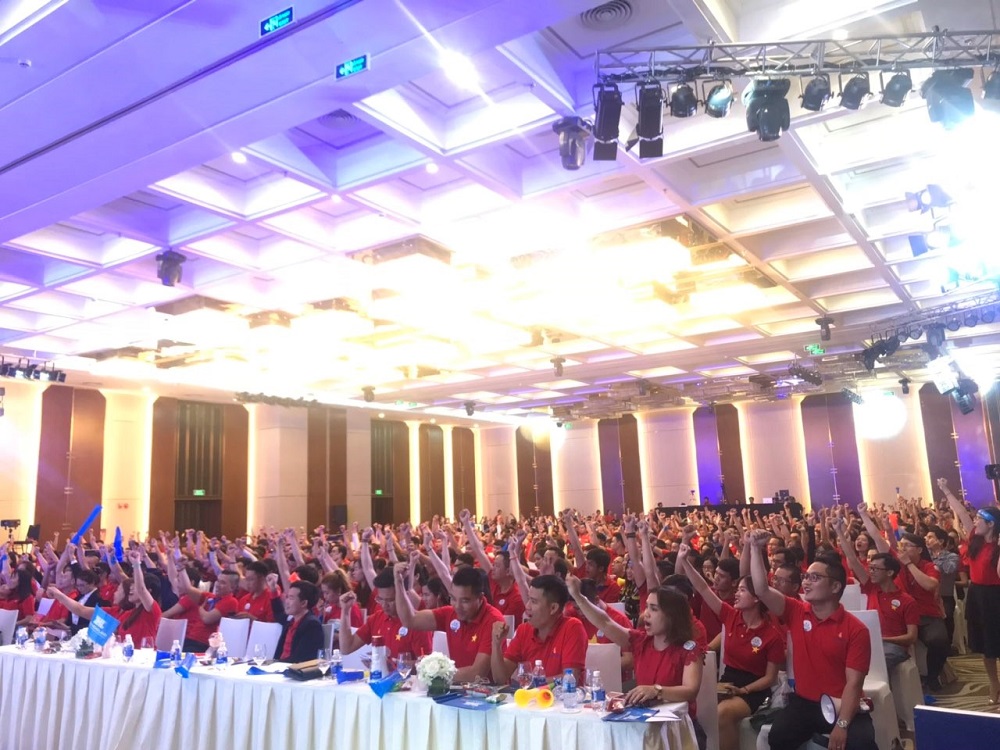 Hàng ngàn chiến binh Sales Khải Hoàn Land thể hiện quyết tâm chinh phục dự án Grand World ngày 6/3/2019.
